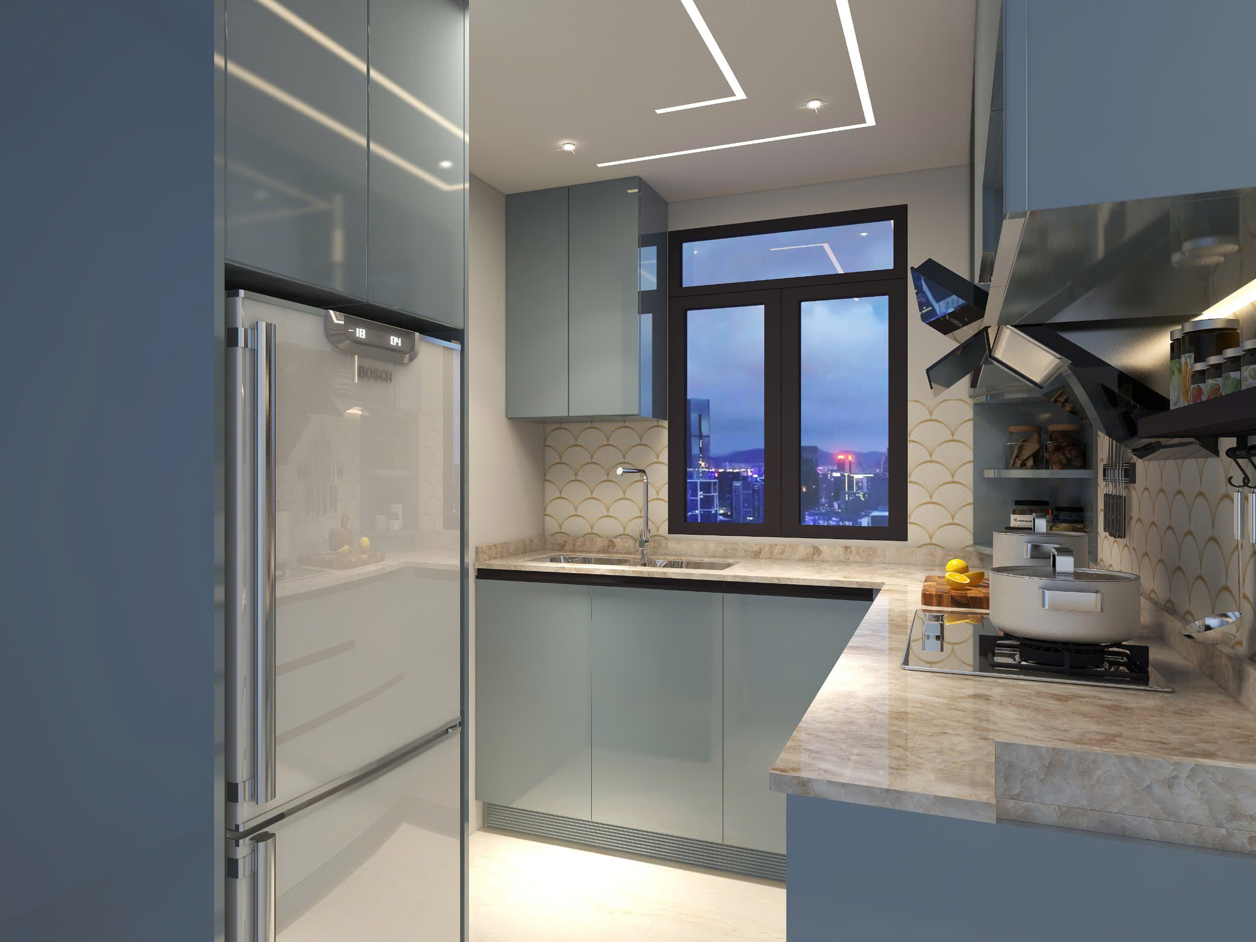 Với phong cách thiết kế nội thất hiện đại, căn bếp này không chỉ ghi điểm bởi sự gọn gàng, mà còn tạo nên một không gian sống động và đầy cảm hứng. Thi công nội thất với các chất liệu cao cấp như gỗ công nghiệp phủ sơn bóng, đá nhân tạo với vân tự nhiên, và gạch ốp họa tiết độc đáo đã tạo nên sự bền bỉ và dễ bảo trì. Hệ thống tủ bếp thông minh tối ưu hóa không gian lưu trữ, giúp căn bếp luôn ngăn nắp, sạch sẽ.